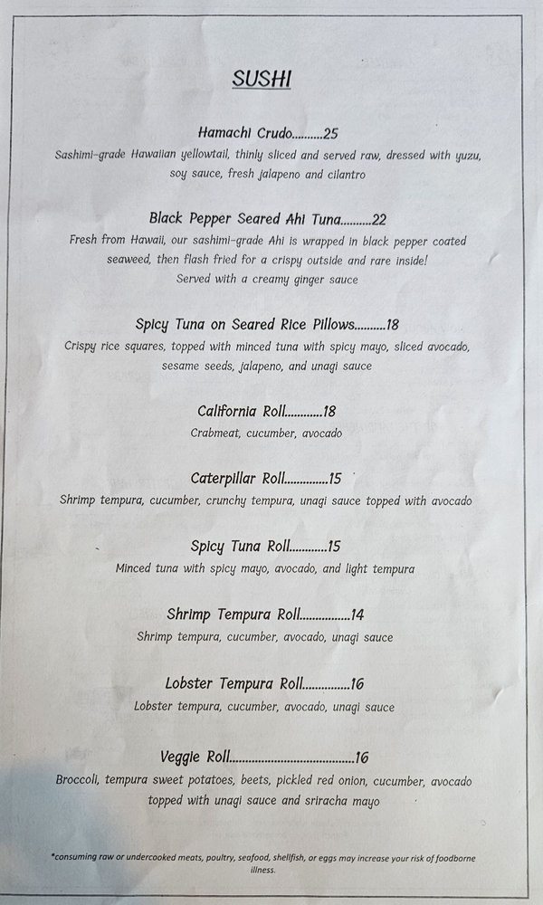Shrimp tempura, cucumber, crunchy tempura, unagi sauce topped w/ avocado